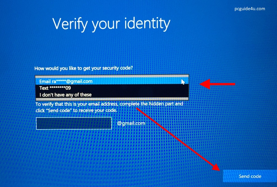 Step 4. Choose one of the verification methods from your list and click on the given send code button.