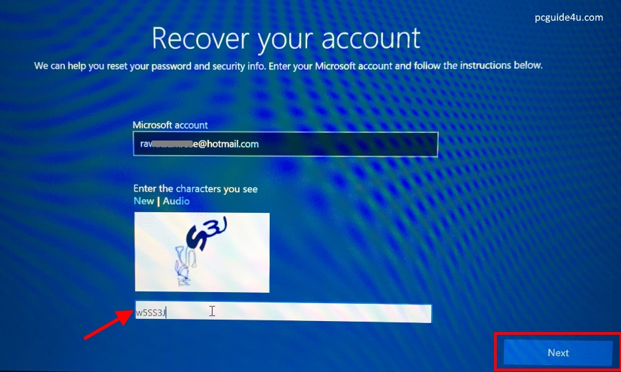 Enter the characters you see in the given box and click Next button.