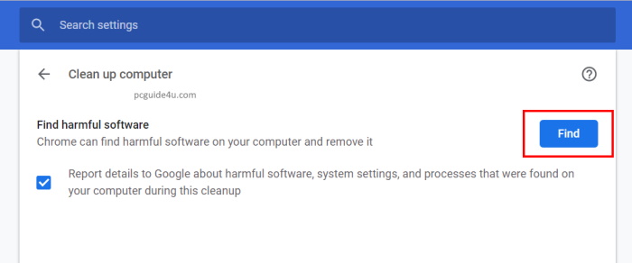 This means Chrome will find harmful software on your computer and remove it. Read More