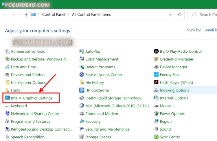 - Locate and click Intel Graphics Settings