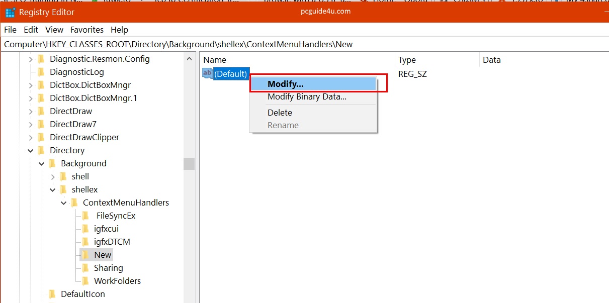 Step 5. Right-click on the (Default) key and select Modify…