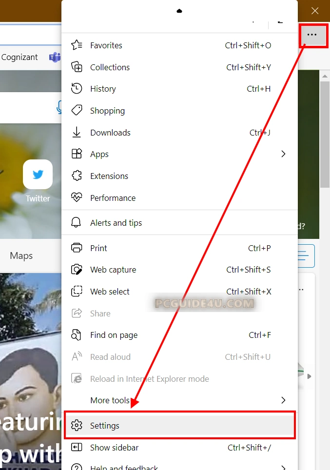 Once Edge appears on the screen, tap the three-dots menu button from the top-right of the Edge and select Settings from the given options.