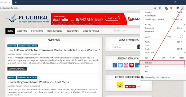 Or, you can open chrome settings directly from a chrome address bar by typing chrome://settings/ and then, hit Enter from the keyboard.