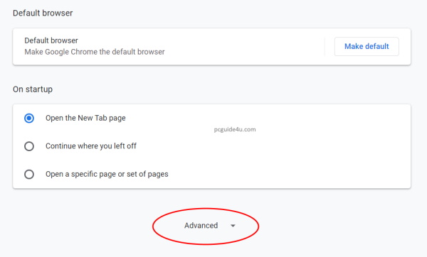 Step 2. The Chrome settings page will come up on your screen. Navigate at the bottom of the windows by scrolling mouse and click Advanced option.