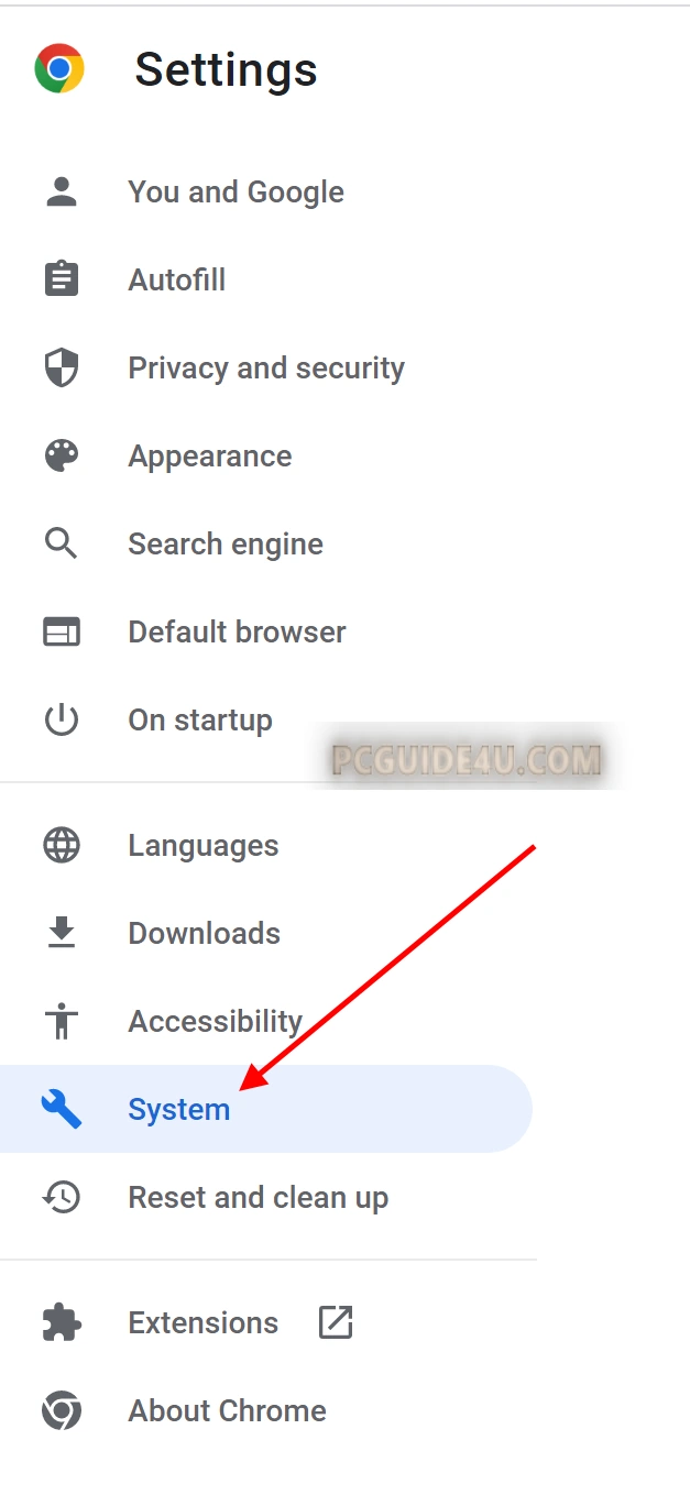 Step 3. On the Settings page, click the System option from the left panel.