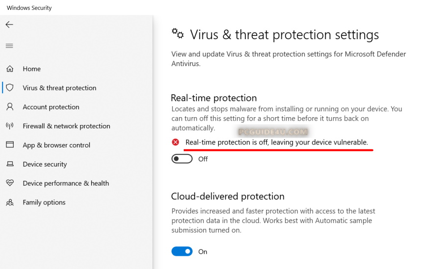 Even now, it will display a message “Real-time protection is off, leaving your device vulnerable.”