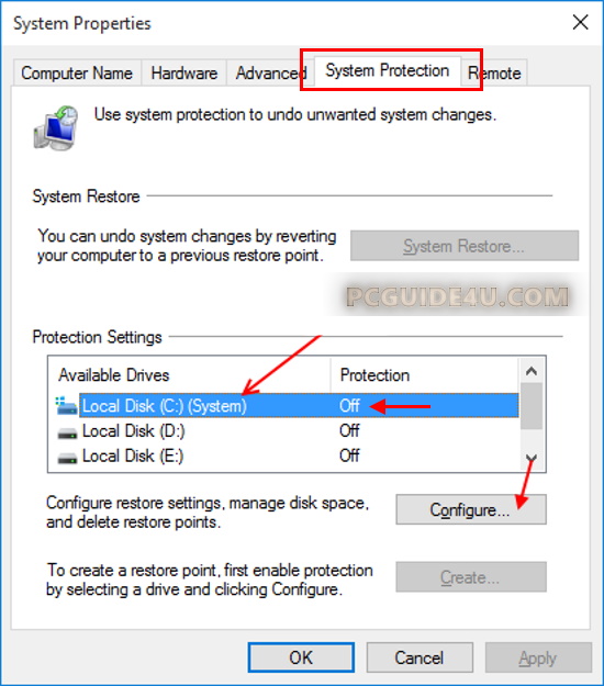 Step 1. Under System Protection tab