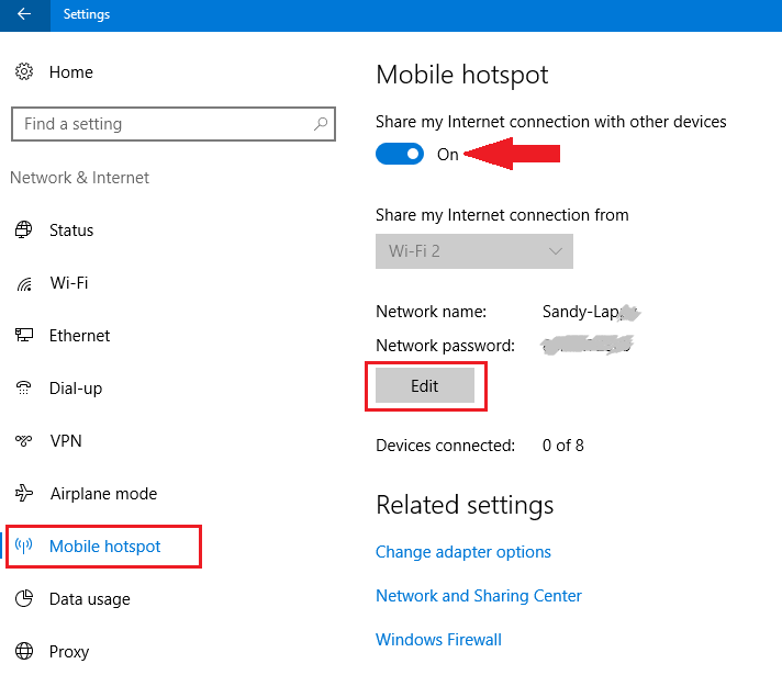 You may also Edit Sharing preferences such as Network name or Network password and set your desired one just by clicking on the Edit Button.