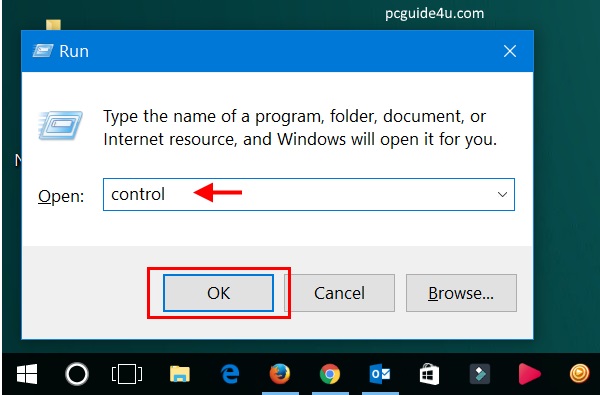 Then type, control and click the OK button. This will open the Windows Control Panel on your screen.