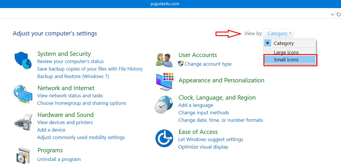 Step 2. Go to the top right, by default, Windows will show you as a Category when you open the Control Panel.