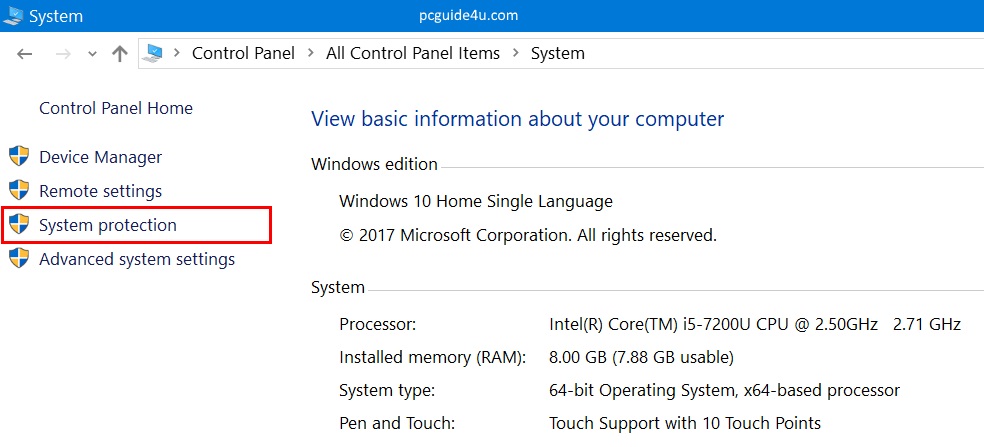 Step 4. Now, go to the left pane and click on System protection.