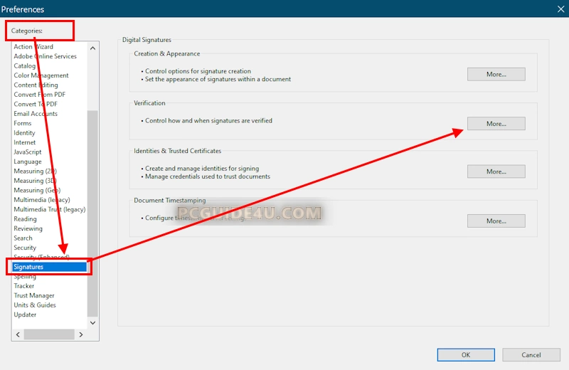 Step 3. From the Categories pane, select Signatures and you will Digital Signature option on the right side