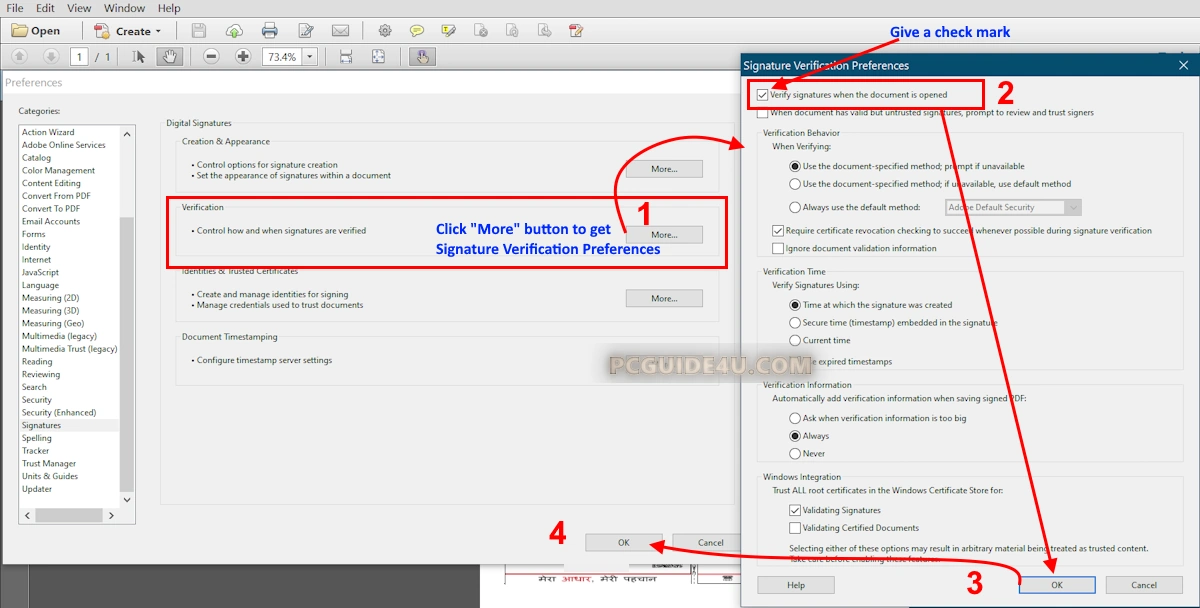 - Give a check-mark on “Verify signatures when the document is opened”.