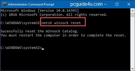 Winsock reset is one of the simplest methods to fix this issue. Use the following command in the command prompt (Admin):