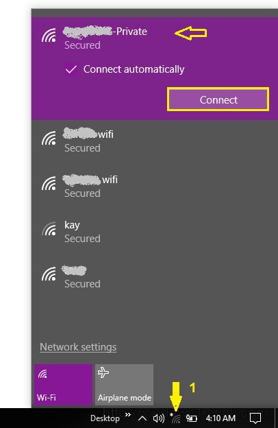 Once your computer is back, go to the network icon at the bottom right of your computer screen. Click on it and choose your WiFi Network name and click on connect.