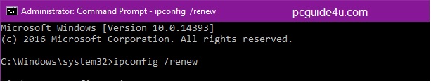 - To renew an IP address, use command: ipconfig /renew and hit the Enter button