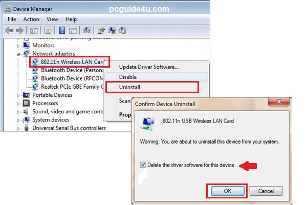 - When the Device Manager opens, look for the wireless adapter driver and right-click on it and select Uninstall.You may receive confirmation that the device driver un-installation, check the box Delete the driver software for this device and click OK.