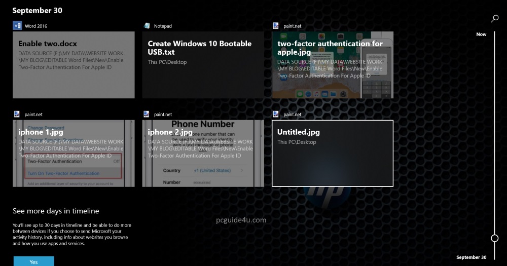 Win + Tab –> This will open Windows 10 Task View (Timeline)