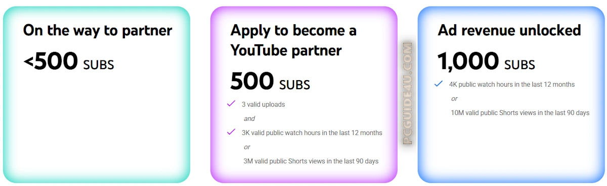| Eligibility Thresholds Reduced | Now easier to qualify with 500 subscribers and 3K watch hours or 5M Shorts views. |