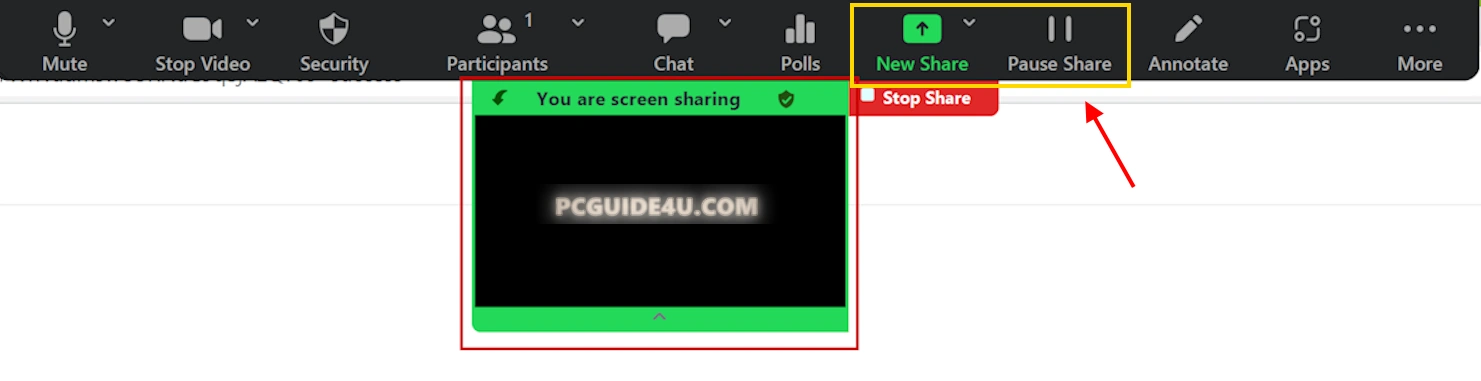 Advanced Screen Sharing—“New Share” and “Pause Share”