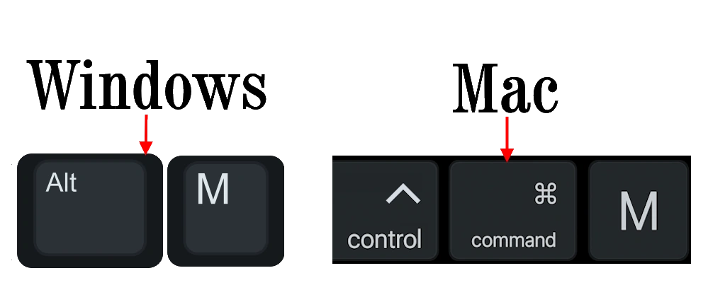 - Shortcut for Windows: Alt+M
